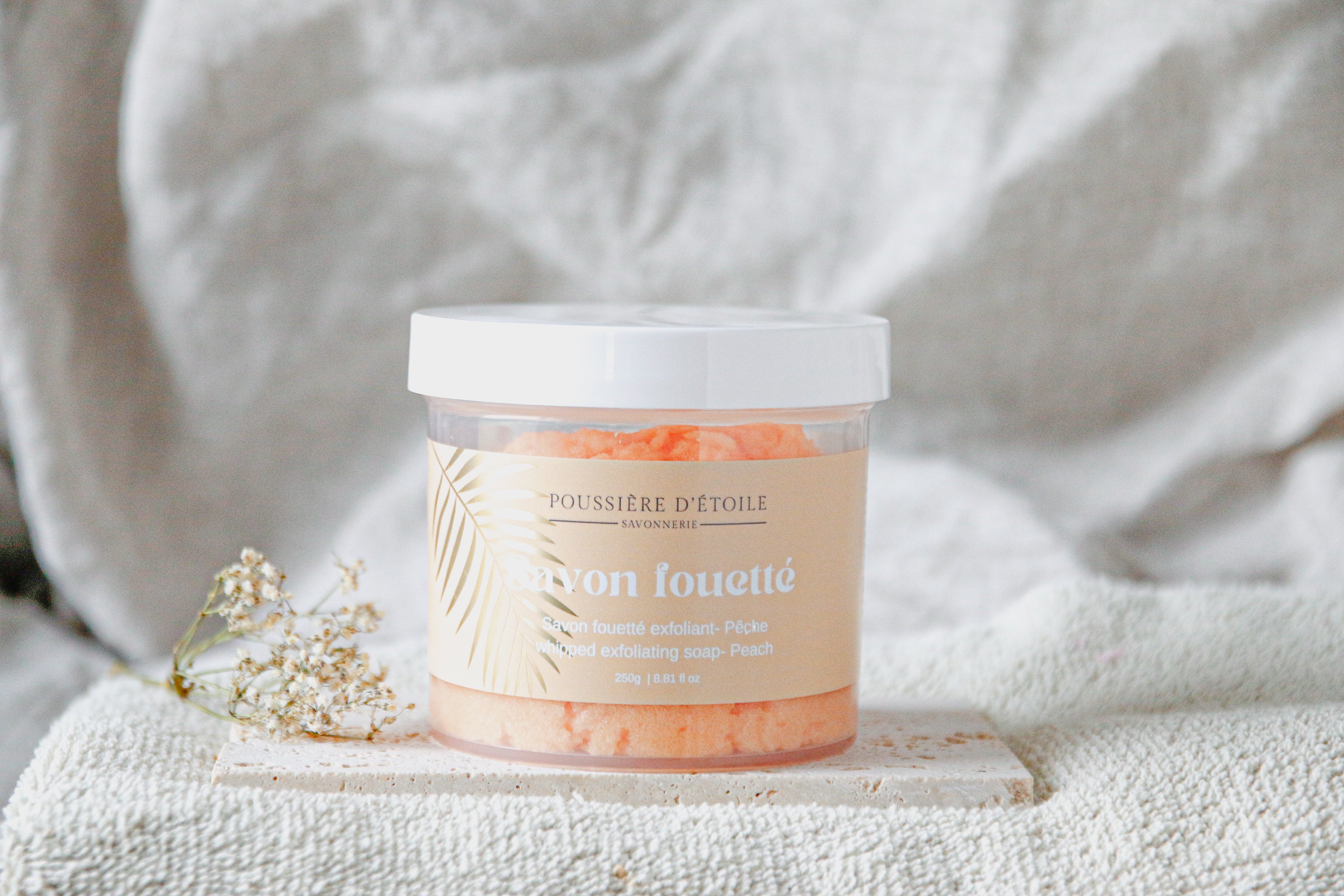 Savon Fouetté Exfoliant à la Pêche – Un Nuage de Douceur Fruité