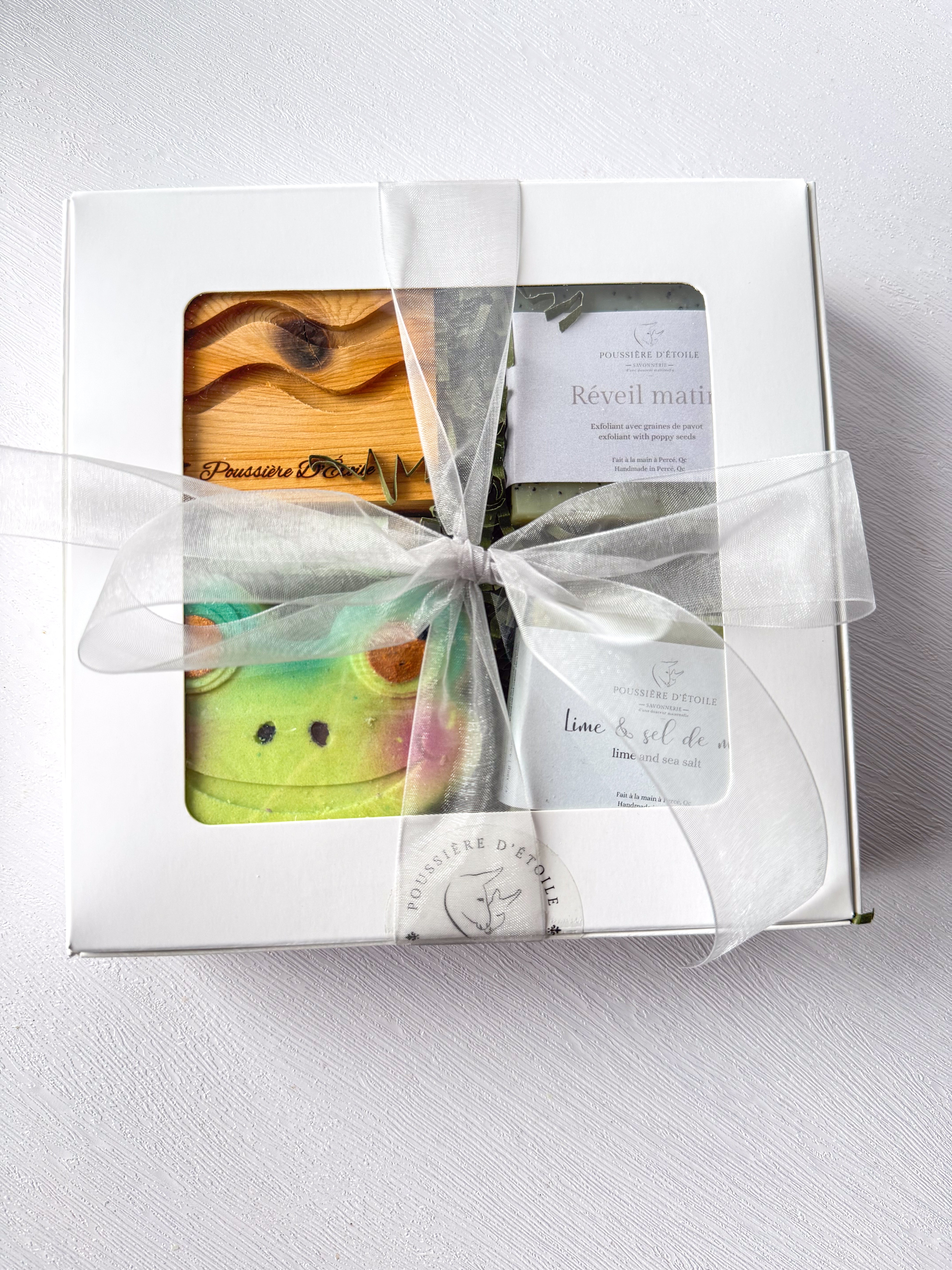 Un coffret frais, joyeux et énergisant, inspiré par la nature et le plaisir du soin.