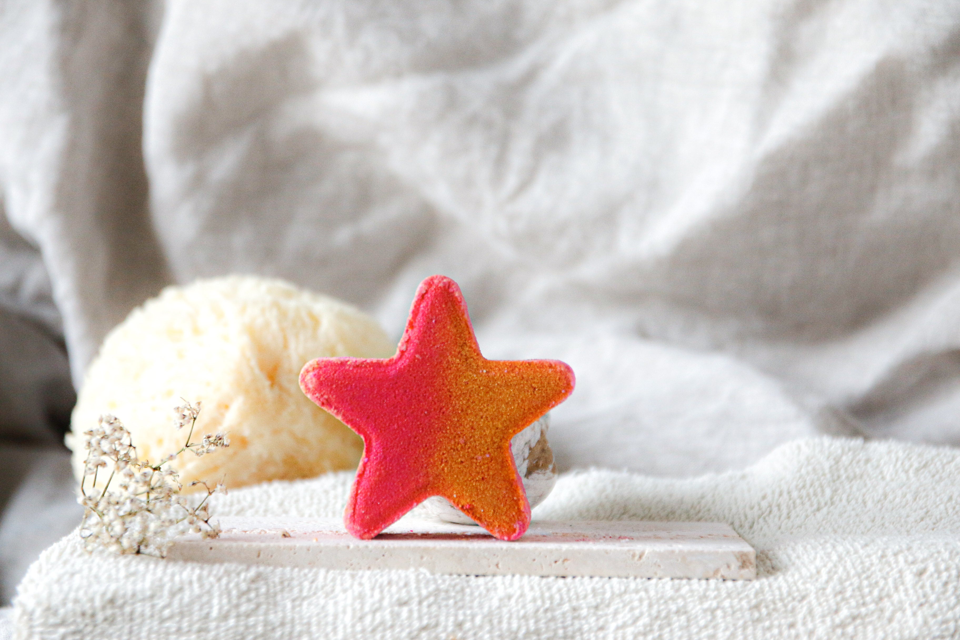 Add a touch of tropical escape to your bath ritual with our Star Bath Bomb – Tropical Sparkle Pomegranate & Mango !