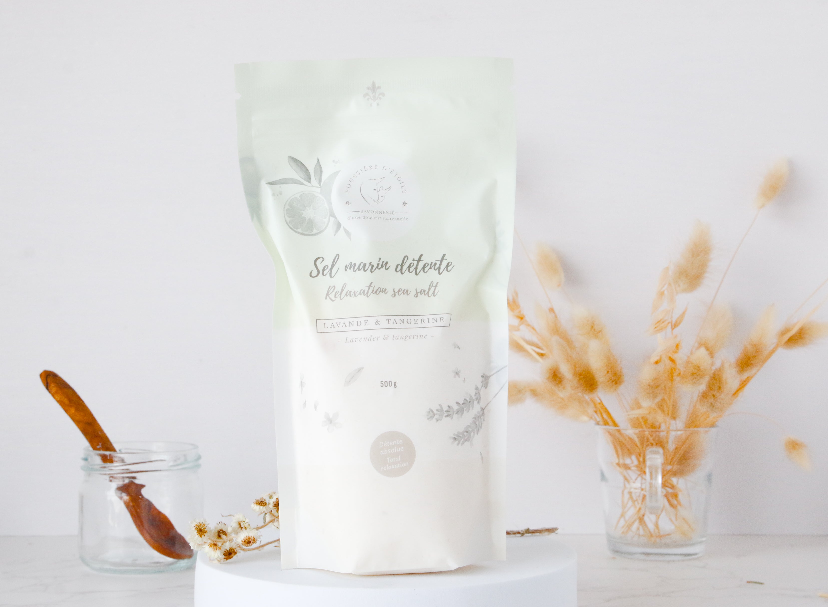 Treat your skin and mind to a relaxing sensory escape with our Soothing Sea Salt . Made with Dead Sea salt, this detoxifying bath treatment combines the purifying benefits of salt with a calming synergy of lavender and tangerine essential oils, transforming your bath into a true wellness ritual.