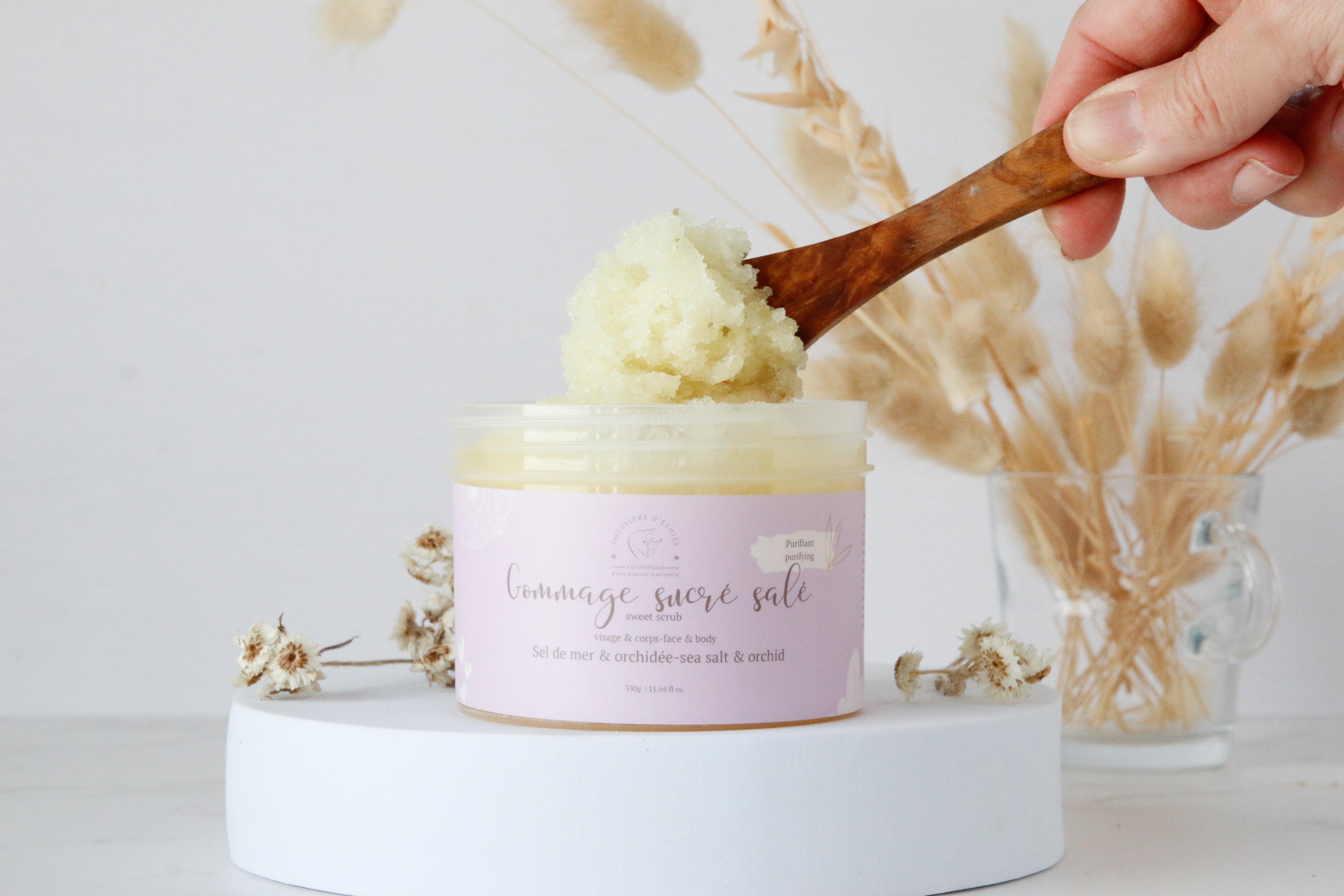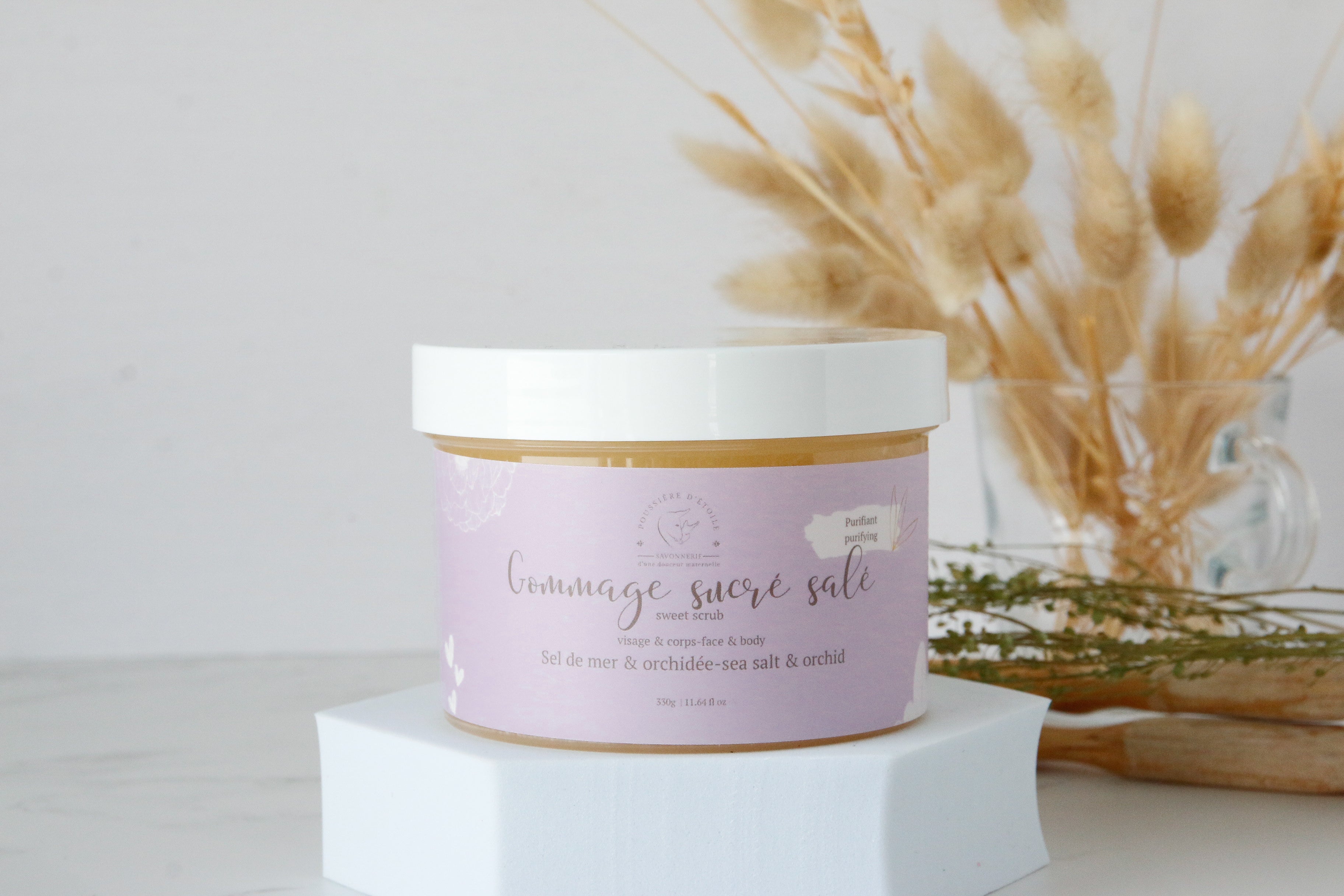 Offrez à votre peau un véritable bain de fraîcheur et de douceur avec notre gommage corporel au sucre, à l’orchidée et au sel de mer. Une exfoliation naturelle qui revitalise, nourrit et sublime votre peau tout en lui apportant une sensation vivifiante, comme une brise marine sur votre peau.