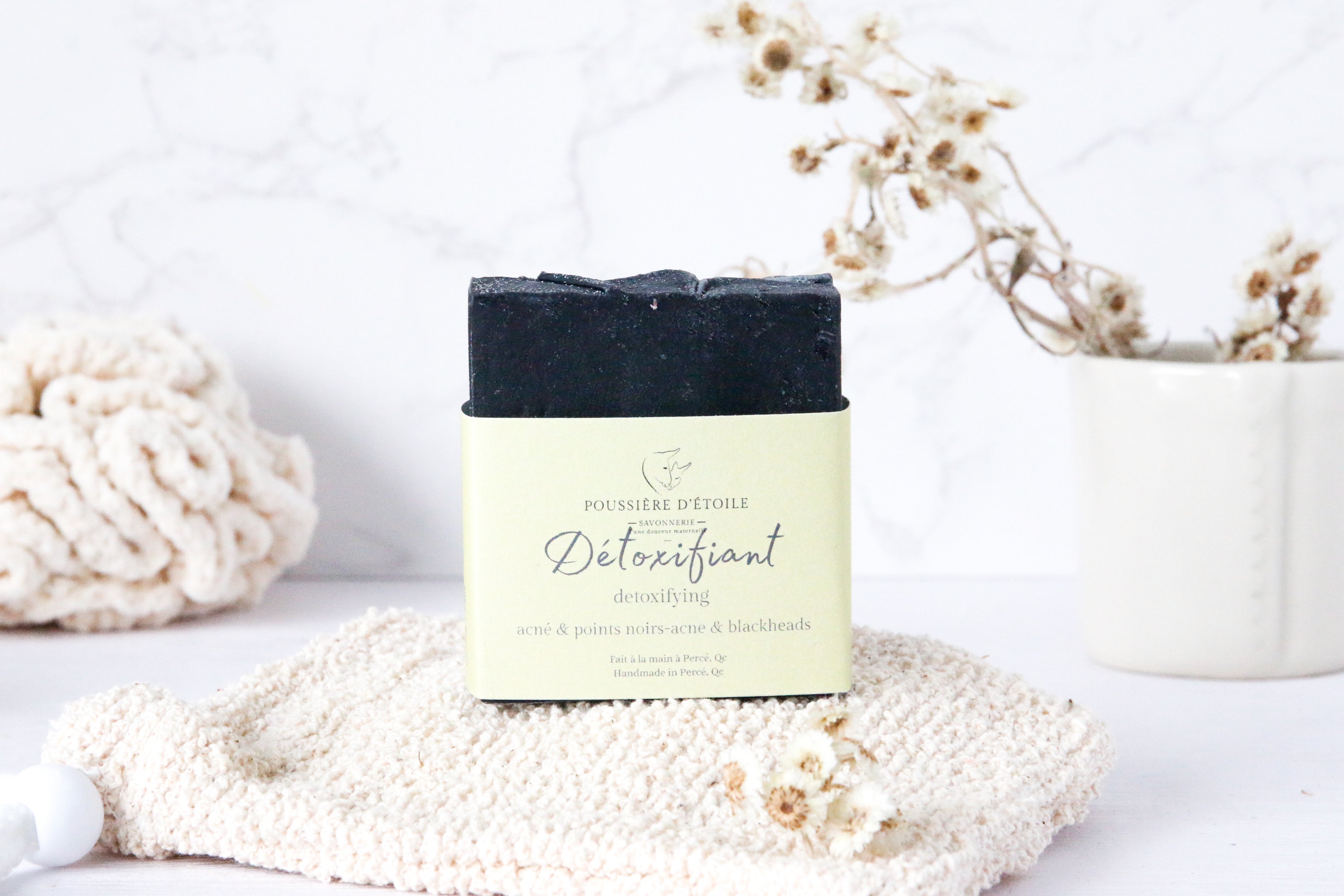 Offrez à votre peau un nettoyage en profondeur avec Détoxifiant, un savon formulé pour les peaux sujettes à l’acné, aux points noirs et aux impuretés.